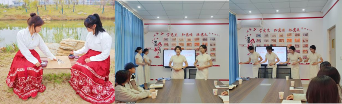 在“古韵风华”环节中,同学们通过汉服纪录片领略华夏服饰之美,借助图文讲解了解历代礼仪演变,于一揖一拜间体会“温润如玉,气质如兰”的君子之风。围炉品茗区营造出宁静雅致的氛围,大家席地而坐,学习煮茶、奉茶与品茗之道,感受茶文化中蕴含的礼节与心境。围棋对弈则让同学们在“手谈”中领悟专注与从容的处世智慧。随后,“现代礼范”板块聚焦实用场景,培训师通过现场演示与互动交流,详细讲解了会议礼仪与职场礼仪等现代行为规范,帮助同学们掌握大方得体、尊重他人的社交表达方式。