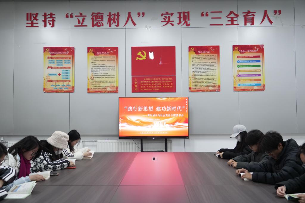 活动现场,青年学子围坐在会议桌前,手持相关书籍静心阅读,整个会场沉浸在浓厚的书香氛围中。大家紧扣“青年成长与社会责任”的主题,在文字里探寻新时代青年的使命坐标,在书页间思考个人成长与社会发展的关系。青年学子或专注研读经典篇目,用笔圈划触动内心的语句;或结合专业视角,在阅读中梳理践行社会责任的路径方向在阅读中沉淀自我、凝聚奋进力量。