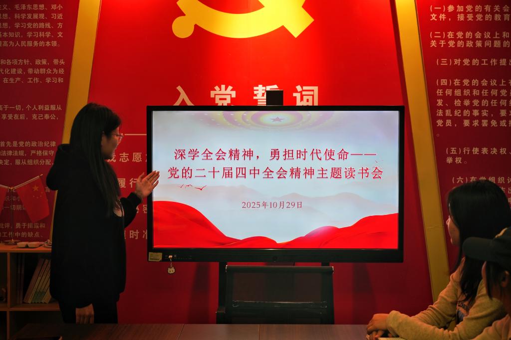 读书会紧扣全会精神主线,精选《党的二十届四中全会公报解读》《中国式现代化与青年担当》等学习材料,从“十四五”重大成就、“十五五”战略部署到青年使命担当,系统解读全会精神的时代内涵与实践要求。交流环节中,青年学子结合文学传媒专业特色,围绕“繁荣新大众文艺”“数字中国建设”等全会部署分享学习心得:有的结合乡村振兴调研经历,畅谈用短视频传播乡土文化的实践计划;有的立足专业学习,探讨如何以文字、影像讲好中国式现代化故事,现场研讨氛围热烈。