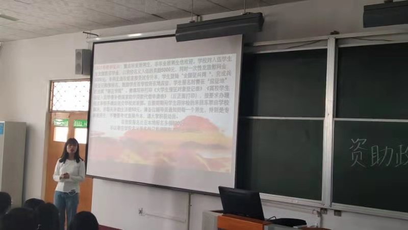 同时,艾文帅从勤工助学、特殊困难补助、建档立卡三个方面向同学们详细讲解了补助申请的流程、审批以及学校的补助政策等具体细则,让同学们感受到了国家对大员工的资助力度和关心帮助。