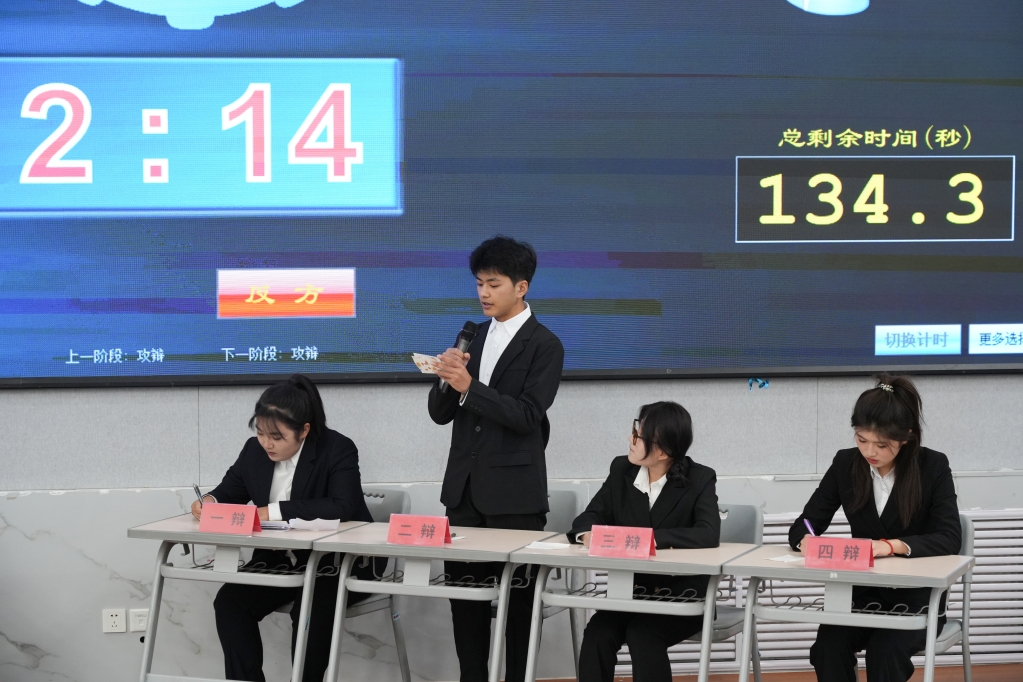 决赛现场,辩手们展现了出色的辩论技巧。首场辩论中,正方以严密的逻辑构建论证体系,立场稳健;反方则以敏锐的思维捕捉对方疏漏,设问犀利。第二场辩论中,正方提出新颖的视角和创新性论点,反方则凭借默契的团队配合和详实的案例进行有力回应。整场比赛精彩纷呈,现场观众报以热烈掌声。